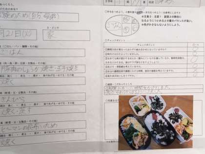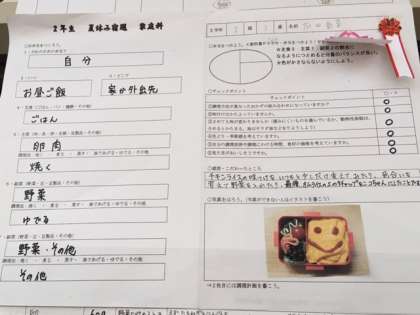 家庭科の夏休みの宿題で、お弁当を献立から完成まで各自作り上げました。