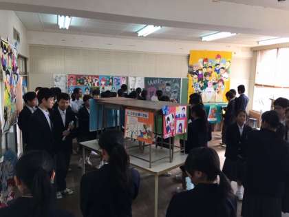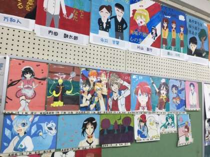 校舎を水彩画で描いた作品から、アニメまで、様々な作品が並びます。