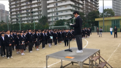 今日の全校集会で、生徒会から「歳末助け合い募金」について説明がありました。今日から1週間、朝の登校時間帯の8:05〜8:25に、正門と西門で生徒会執行部が募金の呼びかけをしています。ご協力、よろしくお願いします。