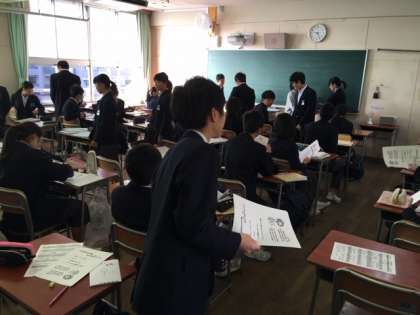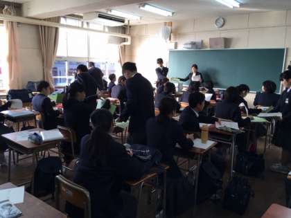 体育館での始業式の後、各クラスで提出物を集めたり、冬休みの宿題を提出したりしました。久しぶりにクラスメートが集まって、冬休みの話などで楽しい雰囲気です。