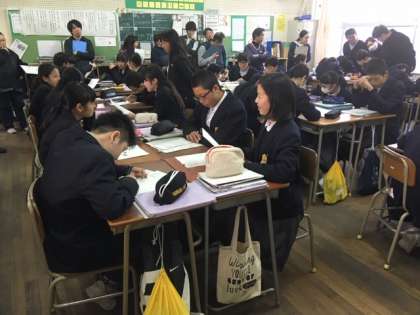 ペアやグループで、英語でのコミュニケーションを深めていく内容でしたが、1年生の英語の授業としては結構ハイレベルだったように思いました。
