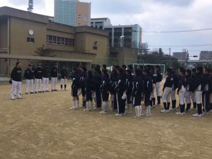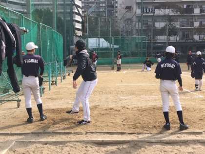 日曜日、ボランティアで野球教室を開いている『YG ONE BIG FAMILY』の総勢8名の方々にお越しいただいて、野球部とソフトボール部合同の練習会を行いました。