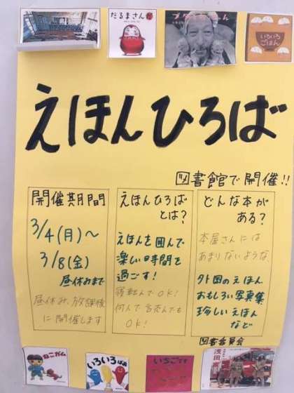 3月4日(月)はPTA(保護者)の皆さんも来館できる日としています。ぜひ、たくさんお越しください。当日は、読み聞かせも行う予定です。