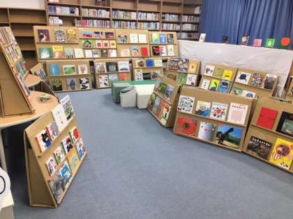 図書委員の生徒たちとPTAの方々のご協力で、友渕中の図書館にいろんな絵本が所狭しと並べられました。日本の絵本、外国の絵本、楽しい絵本、感動の絵本、様々なジャンルの絵本が揃っています。