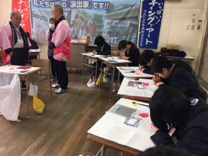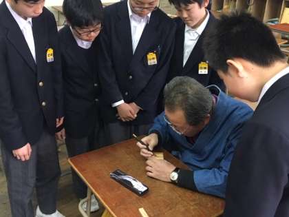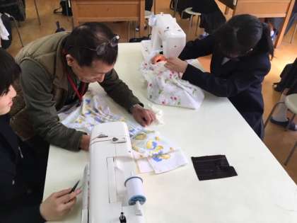 洋服技能士さんによるドレスタオル製作教室・印章技能士さんによる石のはんこづくり教室・広告技能士さんによるカッティングシート教室の様子です。