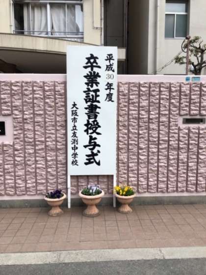 本日、友渕中学校の第35回卒業式が、晴天の中、行われました。
