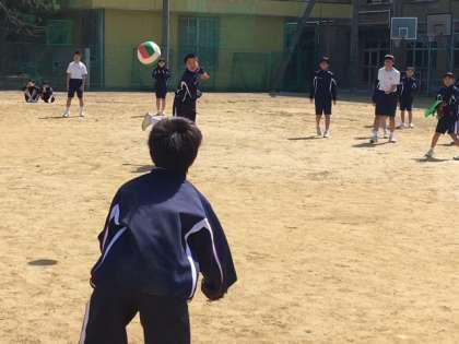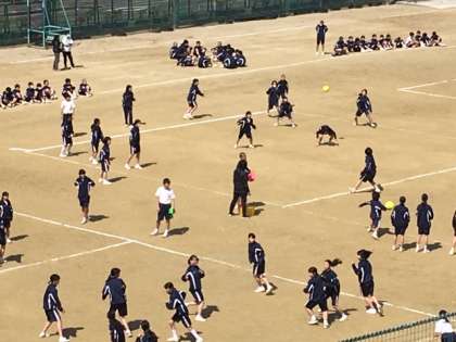 男女別クラス対抗総当たり戦ですが、「王様ドッチ」というルールで、チームに1人王様がいて、その王様が当たればその勝負は負けになります。相手チームはだれが王様かは知りません。