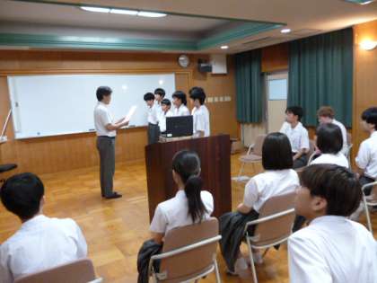 その後、部活動の表彰、給食委員会からの連絡等が行われ、全校集会は終了しました。