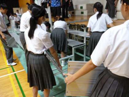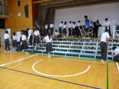昼休みに文化委員会が体育館の舞台設営を行い、午後から体育館および教室で各学年の取り組みが行われます。