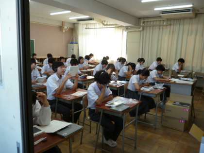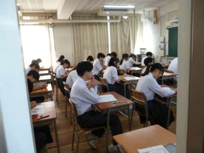 専用のタブレット端末を使い、速読力や集中力が求められるテストのため、生徒のみなさんは集中して全力で取り組んでいました。