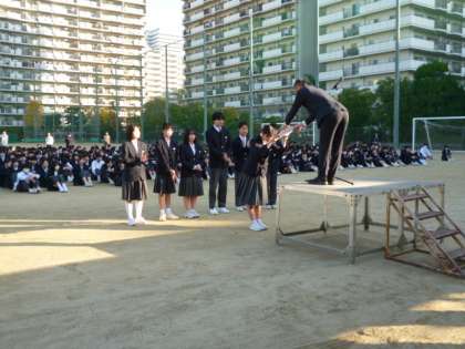 その後、表彰、給食委員会からの連絡等が行われ、全校集会は終了しました。