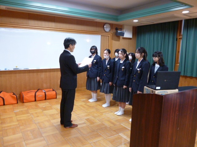その後、表彰が行われ、生活指導部より「学校の施設や備品を大切に使用しましょう」と話があり、給食委員会からの連絡等が行われ、全校集会は終了しました。