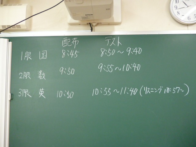 1月9日(金) 3年実力テスト 1日目