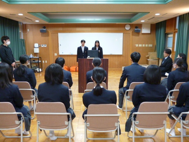 本日もMicrosoft Teamsで全校集会を行いました。最初に校長より、阪神淡路大震災についてお話がありました。31年前の1995年1月17日5時46分に京阪神で大地震が起こり、大きな被害に見舞われました。この地震では多くのボランティアの方が活動を行い「ボランティア元年」とも呼ばれています。当時の被災地では、受付窓口が設置されましたが、たくさんの人が集中した避難所では対応が追い付かないこともあり、駆け付けたボランティアは活動内容を見つけられず帰ってしまうケースもあったそうです。その後は、ボランティアセンターができ、運営も整理されましたが、それでも被災地では、今もボランティアが不足したいます。将来、ボランティアに関心をもって行動し、前向きに人のためになる行動を期待しますと話をしめくくられました。その後、表彰、生活指導部よりの話し、給食委員会からの連絡が行われ、全校集会は終了しました。