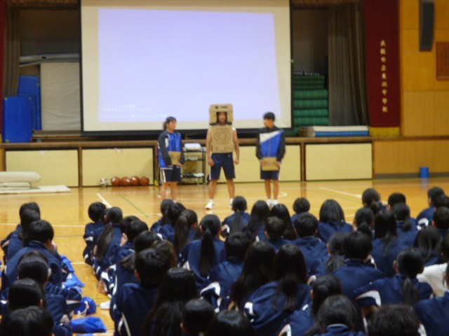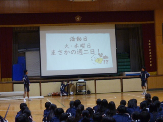本日の6限目に体育館で、1年生が楽しみにしていた部活動紹介がありました。各部活動の代表3名が趣向をこらし、試合本番さながらに実演を行ったり、芸人に勝るとも劣らないトーク力で、とてもわかりやすく、笑いありと、、、会場は、たいへん大盛りあがりでした。明日からの仮入部期間を経て部活動編成を行い、4月17日から本格的に活動が始まります。