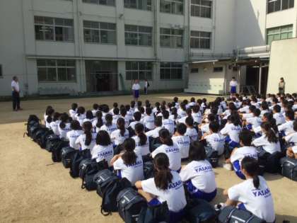 素晴らしい青空です。きっと素敵な2日間になる事と思います。学級代表が中心になり、出発式をおこないました。きっと何度も練習したことでしょう。司会も挨拶もしっかりとおこなうことができました。