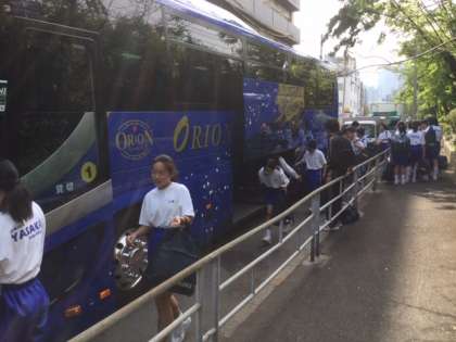 1年生一泊移住その1 さわやかな青空のもと出発しました。