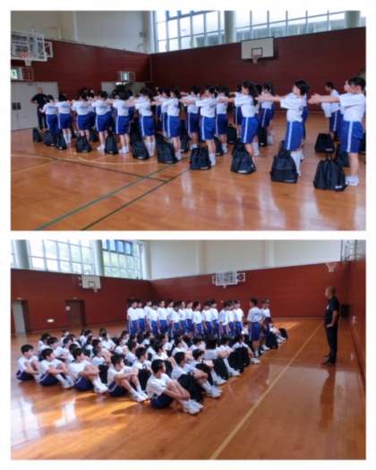 学級代表の指示の声で、素早く正確にさまざまな隊列で集合するトレーニングもおこないました。学級代表が頑張っています。しっかりと大きな声で指示を出すことができるようになっていきます。みんなが意識して行動できるようになってくると、隊列をキビキビと美しく組んで集合することができるようになります。意識の持ち方が高まります。しっかりとできる八阪中学校であることが素晴らしいです。