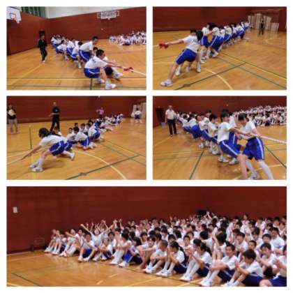 1年生一泊移住その13 室内レクレーション大会 綱引き