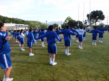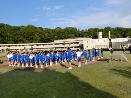 芝生広場で朝の集いをおこないました。全員が時間を守って集合できました。ラジオ体操はまだまだバラバラですが、少し肌寒いくらいの朝の凛とした空気を存分に呼吸して、気持ちよく体を動かすことができました。