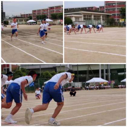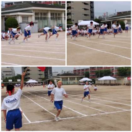 競走は、50m走からです。短い距離であるだけにきわどい勝負がくりひろげられます。全力疾走。躍動します。