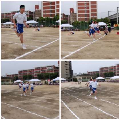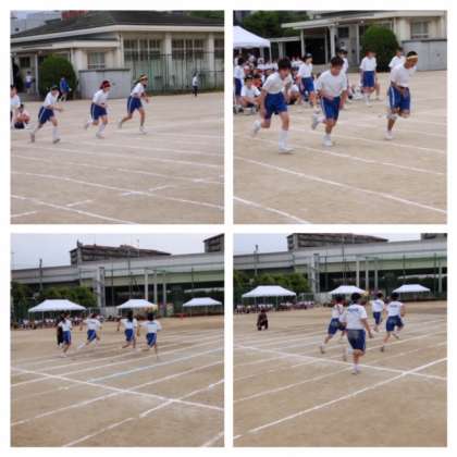 1年生の50m走です。こうしてあらためてみてみると、下級生と上級生の体格はずいぶんとちがうものだと感じます。頑張れ。1つ1つクラスの得点が積み重なっていきます。そろそろ得点と優勝の行方が気になってきます。