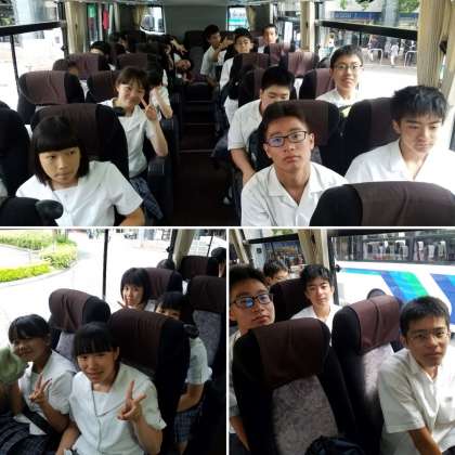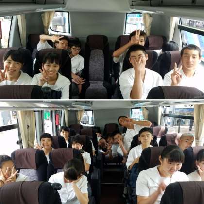 新幹線からバスに乗り換え長崎に向かいます。バスではしっかりシートベルトを閉めましょう。
