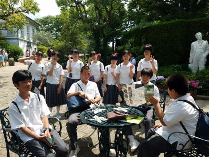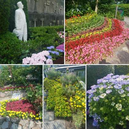 花壇にはたくさんの花が咲いています。とてもきれいです。