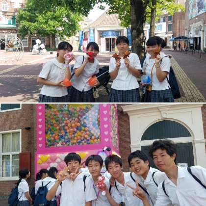 大きなガチャガチャ。回すと中身はテディベアでした。女子にも男子にも人気です。