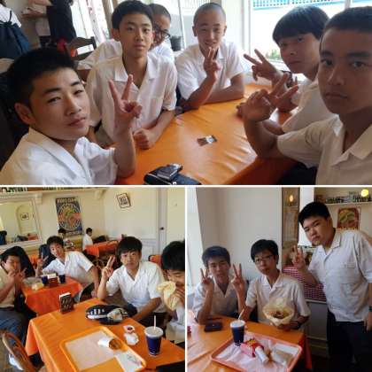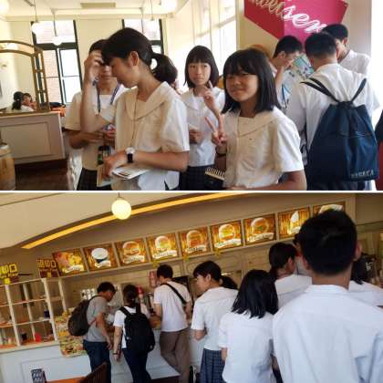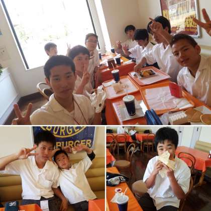 お昼は名物の佐世保バーガー。おっきな口をあけてかぶりつきます。おいしいです。