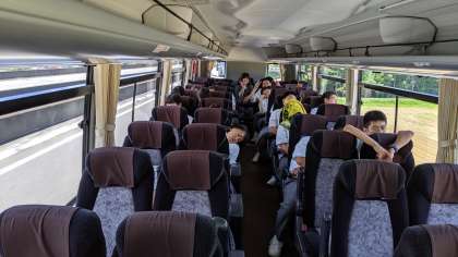 ハウステンボスを出発して、金立SAに向かっています。バスの中は疲れて寝ている人が多いです。