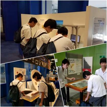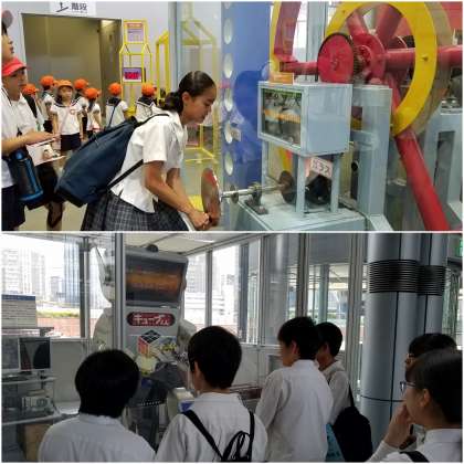 大阪市立科学館の様子です。リニューアルされた新しい展示物を前に、みんな興味津々です。これから学習する電気や天体、1年生で学習した鉱物などの内容が、楽しく学べるようにとても工夫されていました。体験コーナでは、発電量を競ってみんなが順番に手回し発電に挑戦していました。出入り口にはルービックキューブを自動でそろえる制御ロボも展示してあり、立ち止まって面がそろえられる様子を見守っていました。