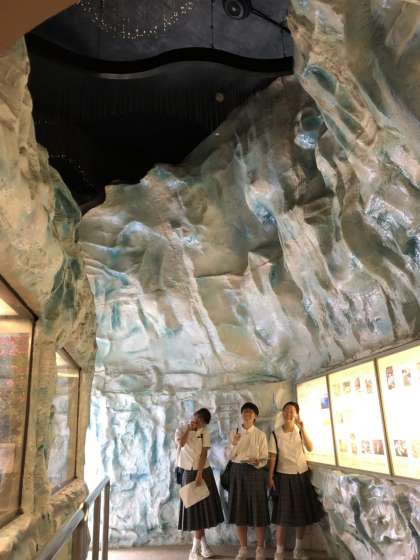 他にも高山植物の展示コーナにはオーロラが再現されていたり、大きな葉っぱで雨宿りと、楽しく学習しています。