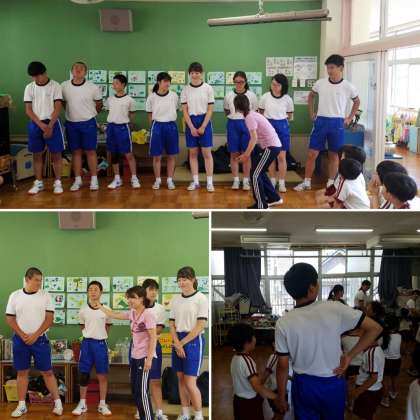まずは、各クラスに入って自己紹介をしました。生徒は最初戸惑った様子でしたが、事前学習で練習したように園児たちに優しく自己紹介ができました。歌やダンスで仲良くなります。