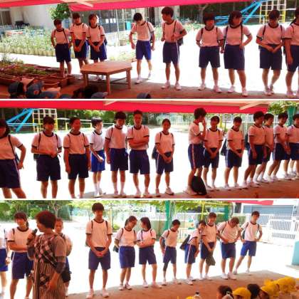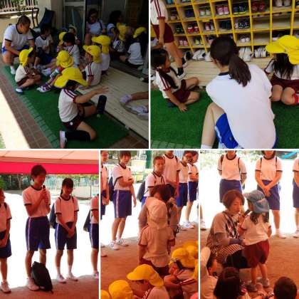 名残惜しいですがお別れの時間。中学生代表からあいさつをしました。「楽しかったです。また遊びましょう。」園児たちからもお礼の言葉「いっぱい遊んでくれてありがとう。」