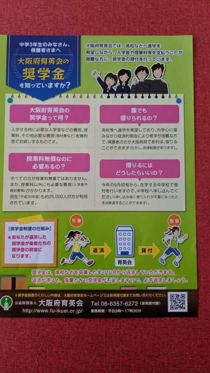 奨学金の説明もありました。詳しくは担任から連絡します。