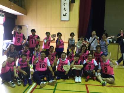 6月23日(日)、鷺州小学校の体育館で、「6校園PTAスポーツ大会」がおこなわれました。八阪中、鷺州小、海老江東小、海老江西小、貫江田幼、海老江西幼の6校園のPTAチームがソフトバレーボールで親睦を深めます。おそらく100名ほどの大人たちが笑顔と歓声で盛り上がる時間は、とても平和で温かい時間です。