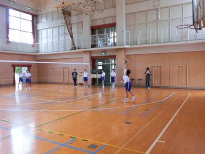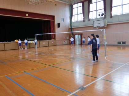中心となるテーマは、サーブとサーブレシーブ。バレーボールのゲームをおこなうための最初の入口でありながら、なかなか習得が難しいプレーでもあります。ウォーミングアップと基本パスの練習の後、ルールを工夫したミニゲームをおこないました。サーブ対サーブレシーブの対戦です。積極的に取り組む姿勢が感じられました。