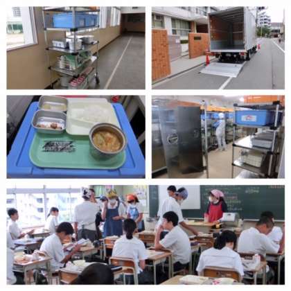 ■本校の給食は、同じ福島区の玉川小学校で調理されています。委託業者による調理です。衛生基準はたいへん厳しく、美味しくて安全な給食が毎日調理されています。