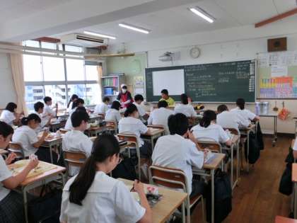 ■各クラスで配膳係の生徒たちが手際よく協力して配膳を進めていきます。配膳が終わるのを行儀よく着席して待っていることが印象的でした。