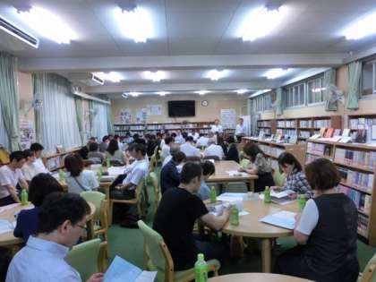 7月11日(木)、19時から、たくさんの方々にお集まりいただき、「鷺州 海老江地域 児童生徒健全育成協議会」が本校の図書室でおこなわれました。