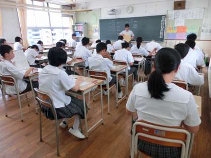 8月27日(火)、3年生は早速の「実力テスト」です。1限の社会から始まり、5限までテストが続きます。