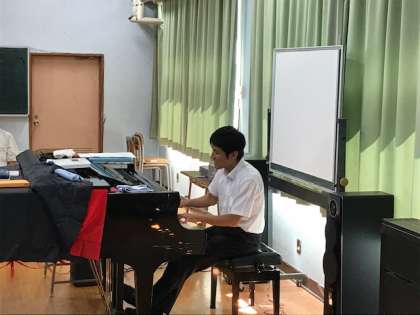 本校は、音楽科の会場校となり、音楽科の乾教諭が2年1組の生徒と共に研究授業をおこないました。