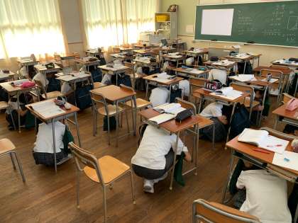 9月5日(木)、11時からの大地震・大津波に備える「大阪880万人訓練」にあわせ、本校でも、危険回避行動訓練をおこないました。