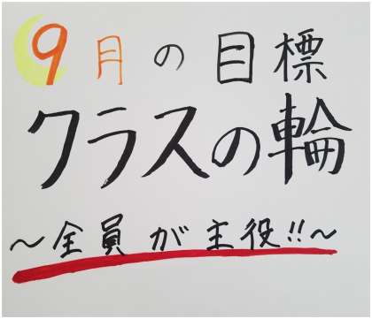 9月の学年目標『クラスの輪 〜全員が主役!!〜 』を実現すべく、全員で頑張っていきます!
