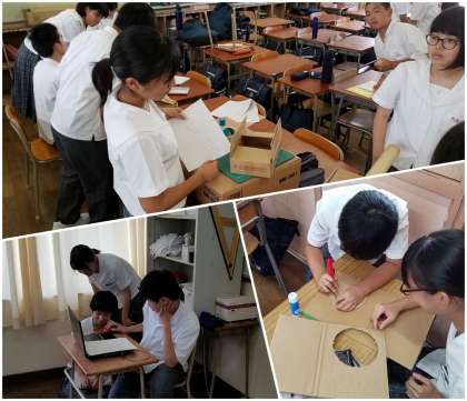 2年生はクラス劇の準備で大忙しです。役者陣、音響・照明係は別室で舞台稽古、小道具・大道具係は今日から本格的に作業に取り掛かっています。