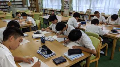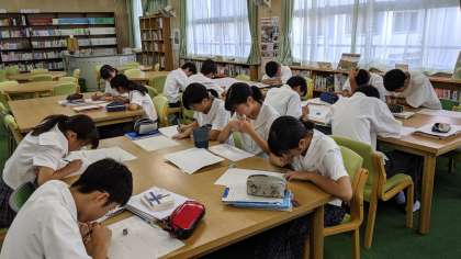 学力向上のために3年数学で分割授業をおこないました。事前に生徒たちに希望調査をとり、基本コースと応用コースに分かれて学習をします。応用コースでは超難関入試問題にチャレンジして頭を悩ませていました。