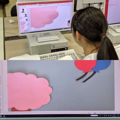 3年アニメーション班です。せっせと作品を作ってます。これは桜でしょうか?どんな場面かな?