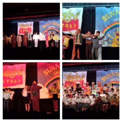 サニーサイド保育園に寄付されたおもちゃたちが次々に動きだし話しだして、久しぶりに子どもたちと遊んでもらえる時を心待ちにしますが‥うわーっ、こんなやんちゃな子どもたちの相手では身体がもたない!かわいいダンスあり、色彩豊かな衣装や背景あり、とても楽しい劇でした。