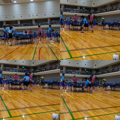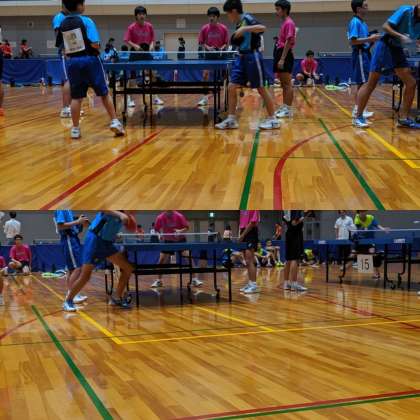3回戦は面白いようにドライブが決まってます。相手も低め低めで攻めてきますが、うまく持ち上げてトライブに切り替えています。2本取って、ダブルス、4th、ラストにつなげました。ダブルスは1年生組です。サーブが効いてます。